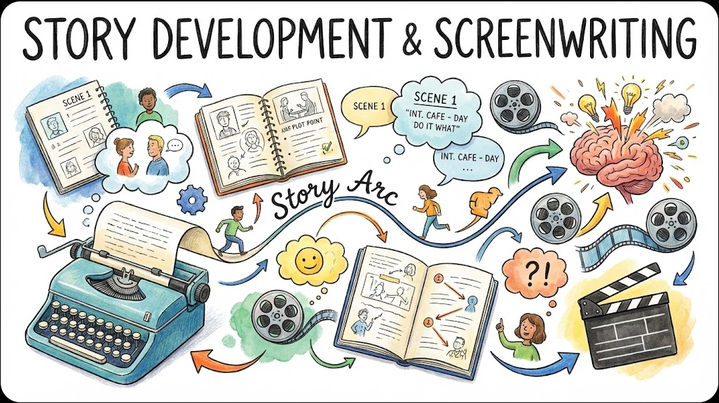 Scriptwriting and Story Development is a dynamic course designed to help students transform ideas into compelling written narratives for film, television, digital media, and beyond. Students will explore the fundamentals of storytelling, including character creation, plot structure, world-building, and theme, while learning how to craft clear and engaging scripts. The course emphasizes essential scriptwriting techniques such as dialogue, pacing, formatting, and visual storytelling. Through workshops, peer reviews, and guided writing exercises, learners will refine their voice and develop the ability to give and receive constructive feedback. By the end of the course, students will have created original story concepts and polished script pages that demonstrate their understanding of narrative craft and industry-standard writing practices.