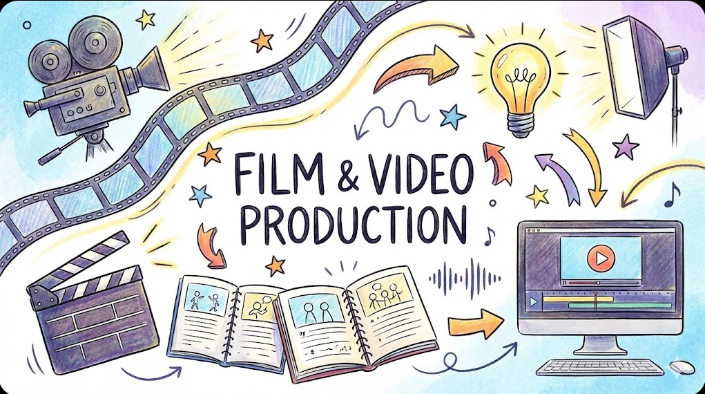 Film and Video Production is an immersive course that introduces students to the complete process of creating visual media, from concept to final edit. Learners will explore essential production techniques, including camera operation, lighting, sound recording, and directing, while gaining hands-on experience with professional equipment. The course also covers the fundamentals of pre-production planning, such as script breakdowns, shot lists, storyboards, and production scheduling. Throughout the class, students will work both independently and collaboratively to produce short film or video projects that demonstrate their technical and creative skills. By the end of the course, students will have a solid understanding of filmmaking workflows and the ability to craft visually engaging, well-structured video content.